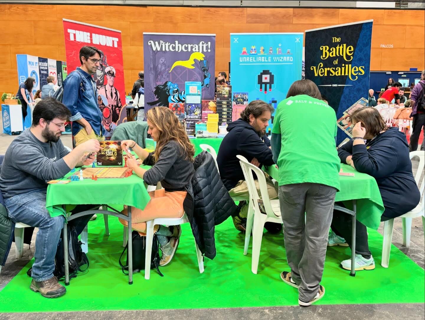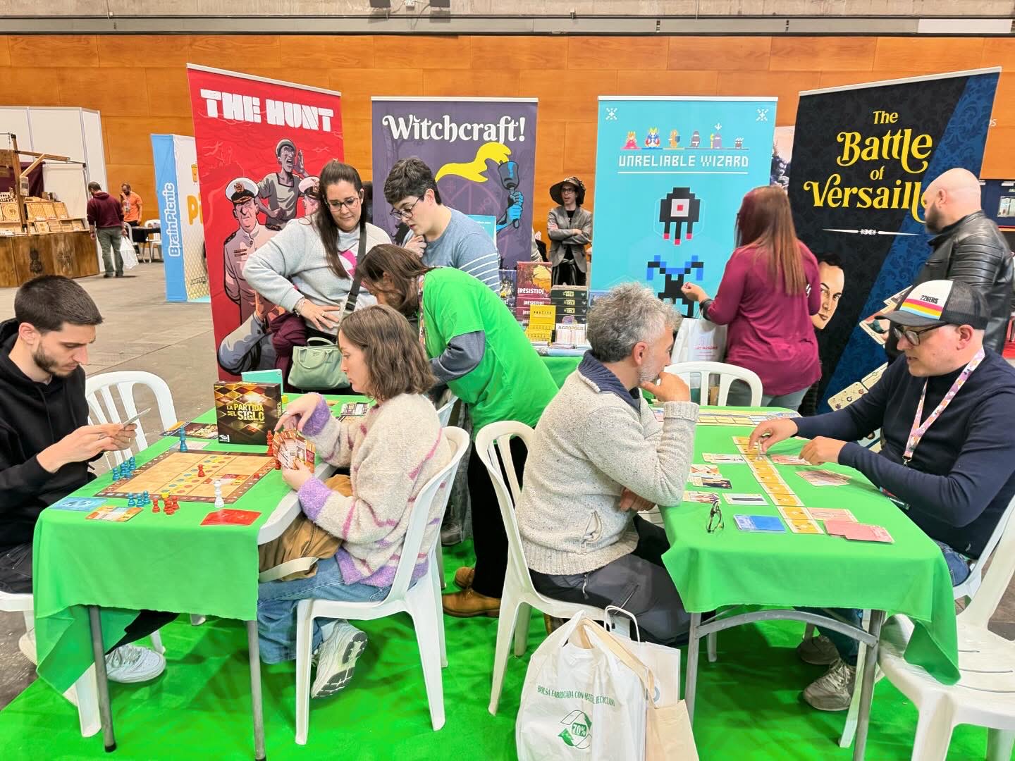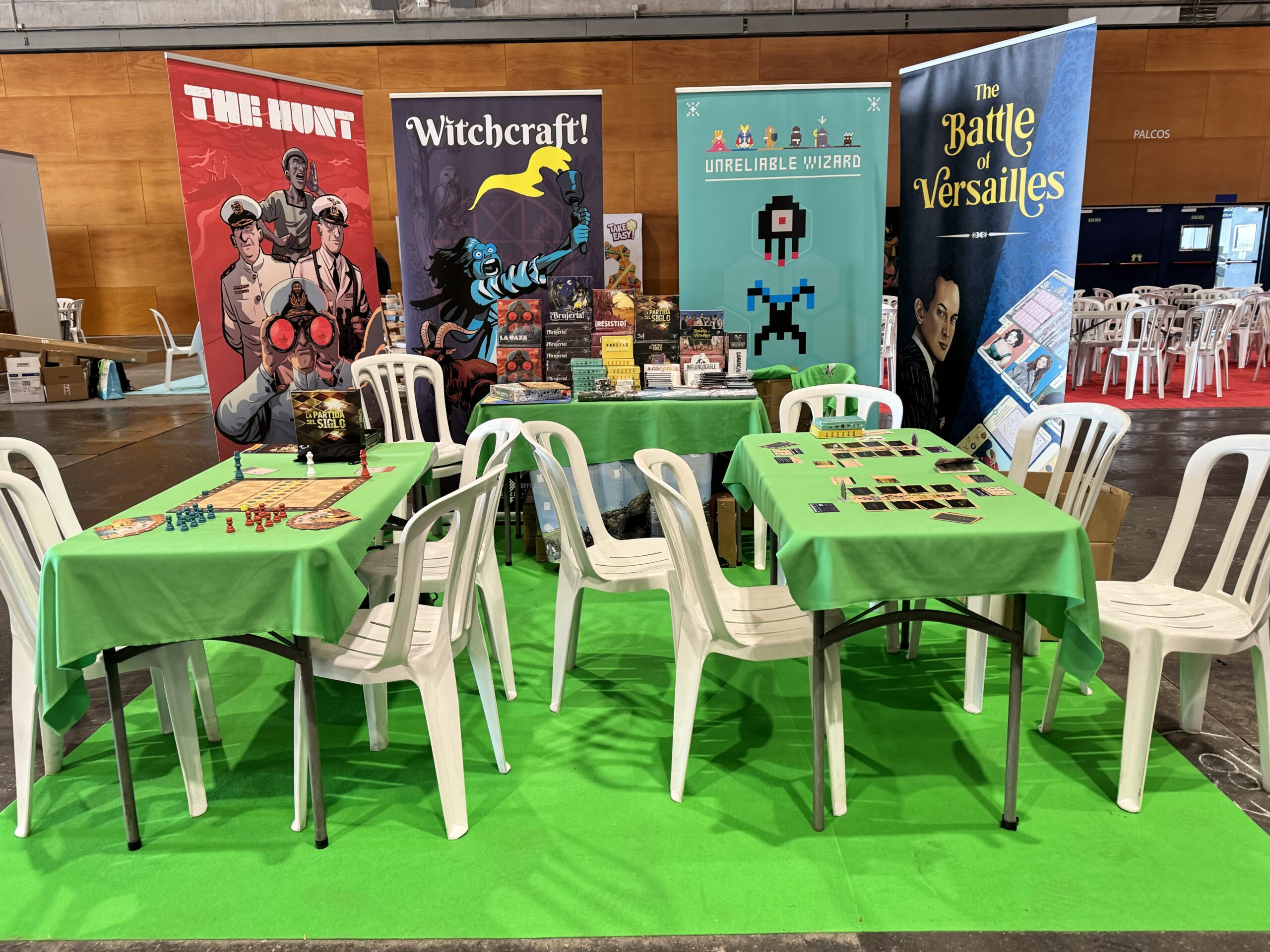 También se jugó mucho a La Batalla de Versalles y ¡Brujería! mientras el resto de nuestro catálogo miraba con envidia desde la mesa de venta. A ver si el próximo año podemos seguir creciendo y tener un espacio más grande para que podáis probar más cosas.