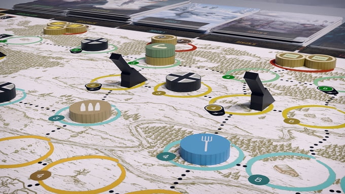 Halls of Hegra es un juego solitario con una duración estimada de 70-90 minutos que puede recordarte a juegos como Robinson Crusoe, This War of Mine y Dead of Winter. Las mecánicas principales son la de colocación de trabajadores, bag building y control de áreas, aunque también tiene elementos de forzar la suerte.